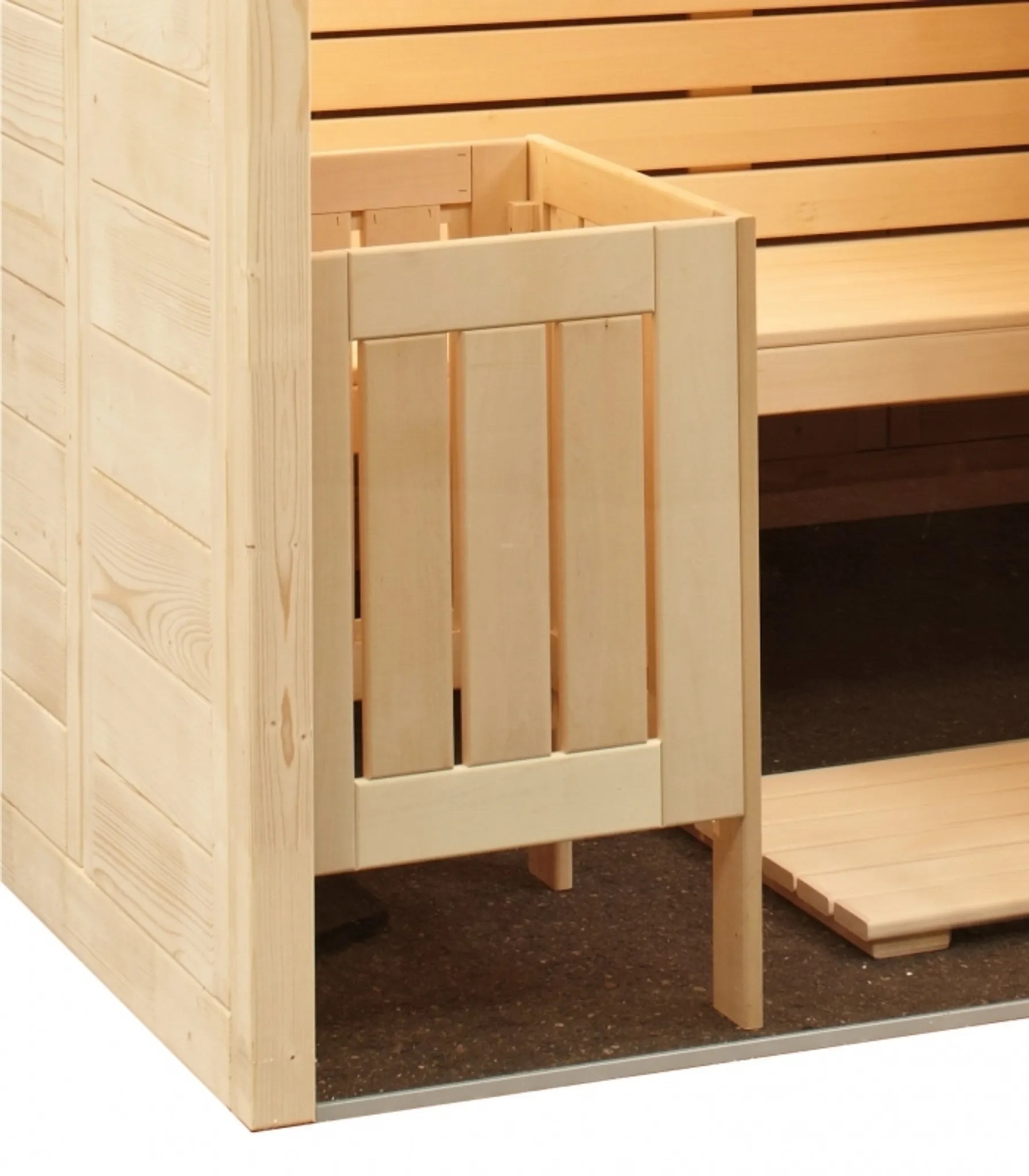 Hochwertiges Ofenschutzgitter aus edlem Lindenholz für Ihre Sauna.