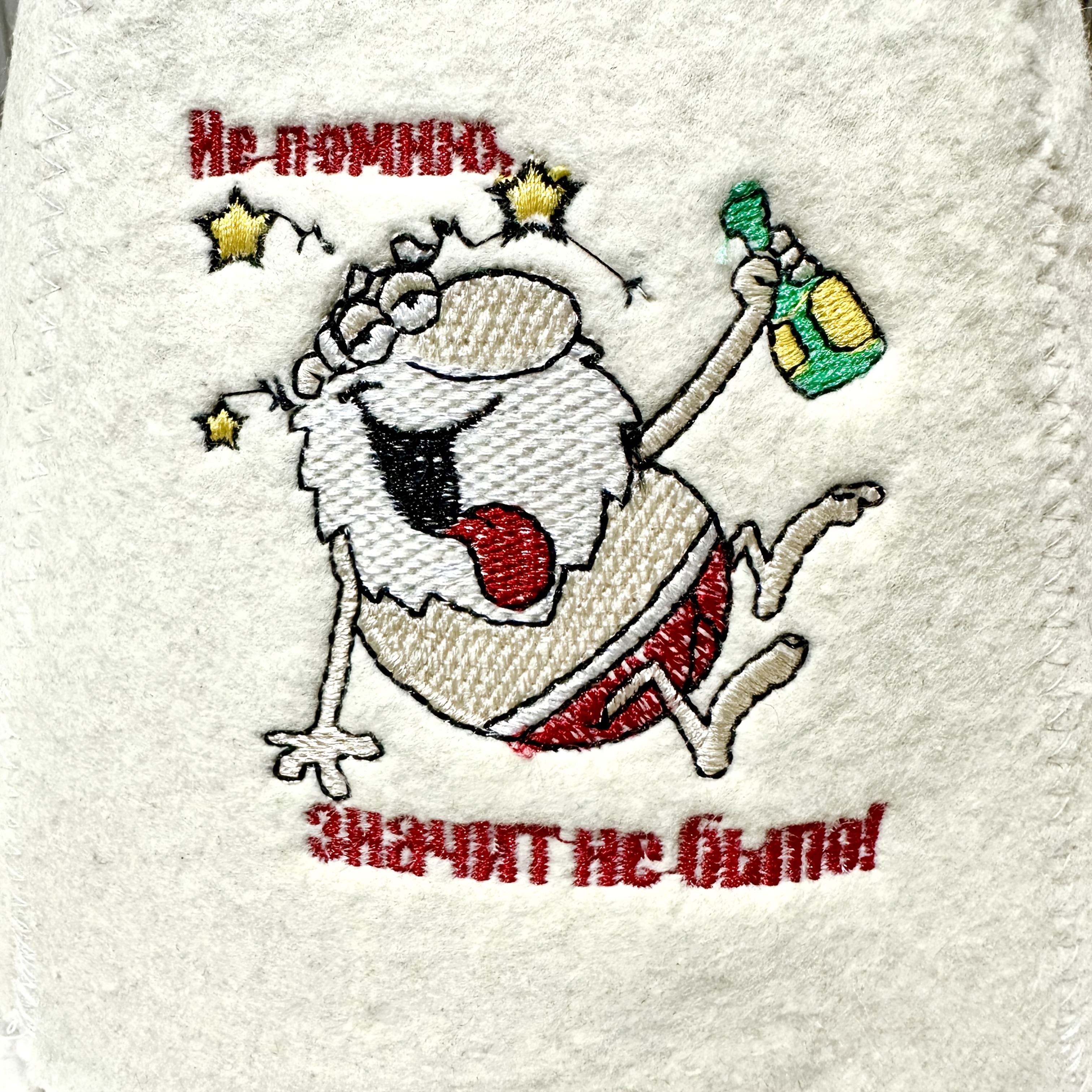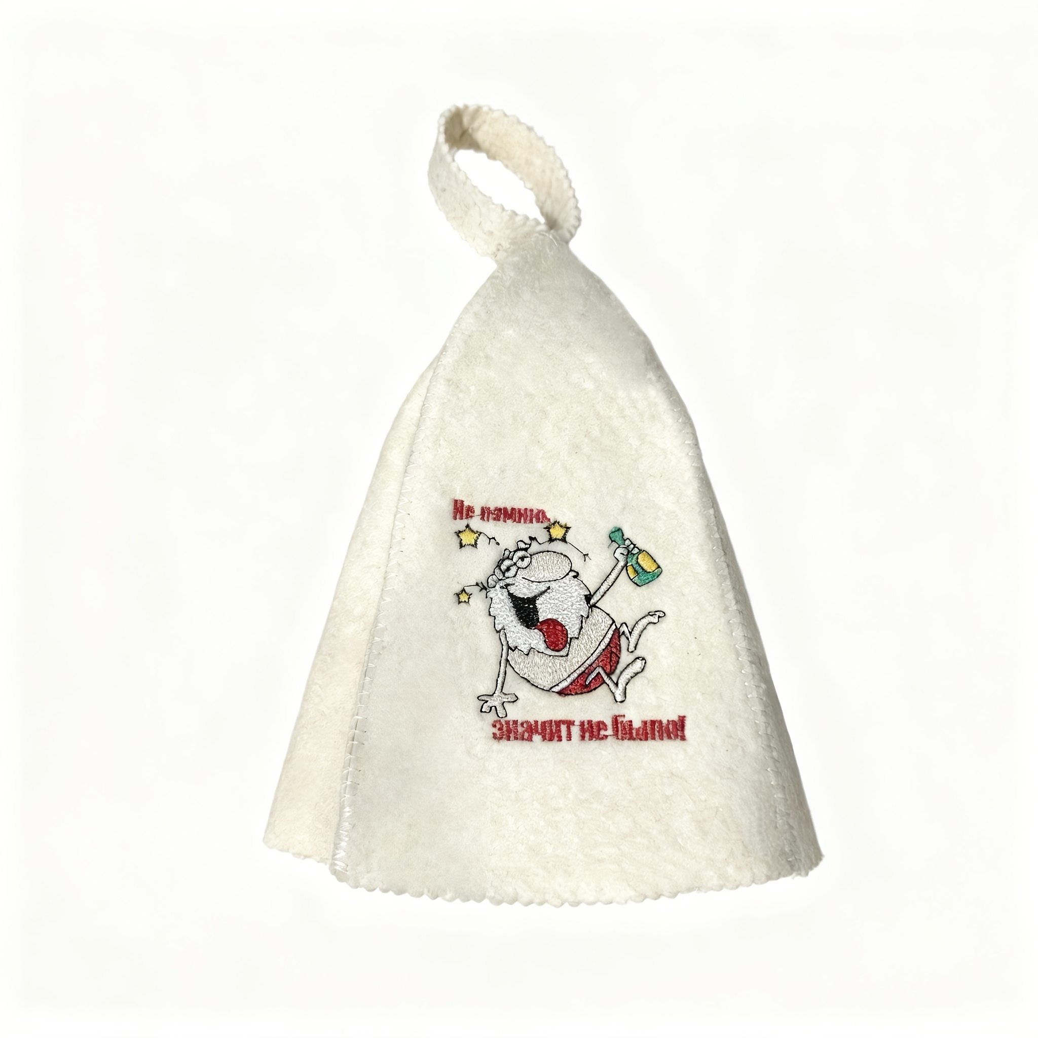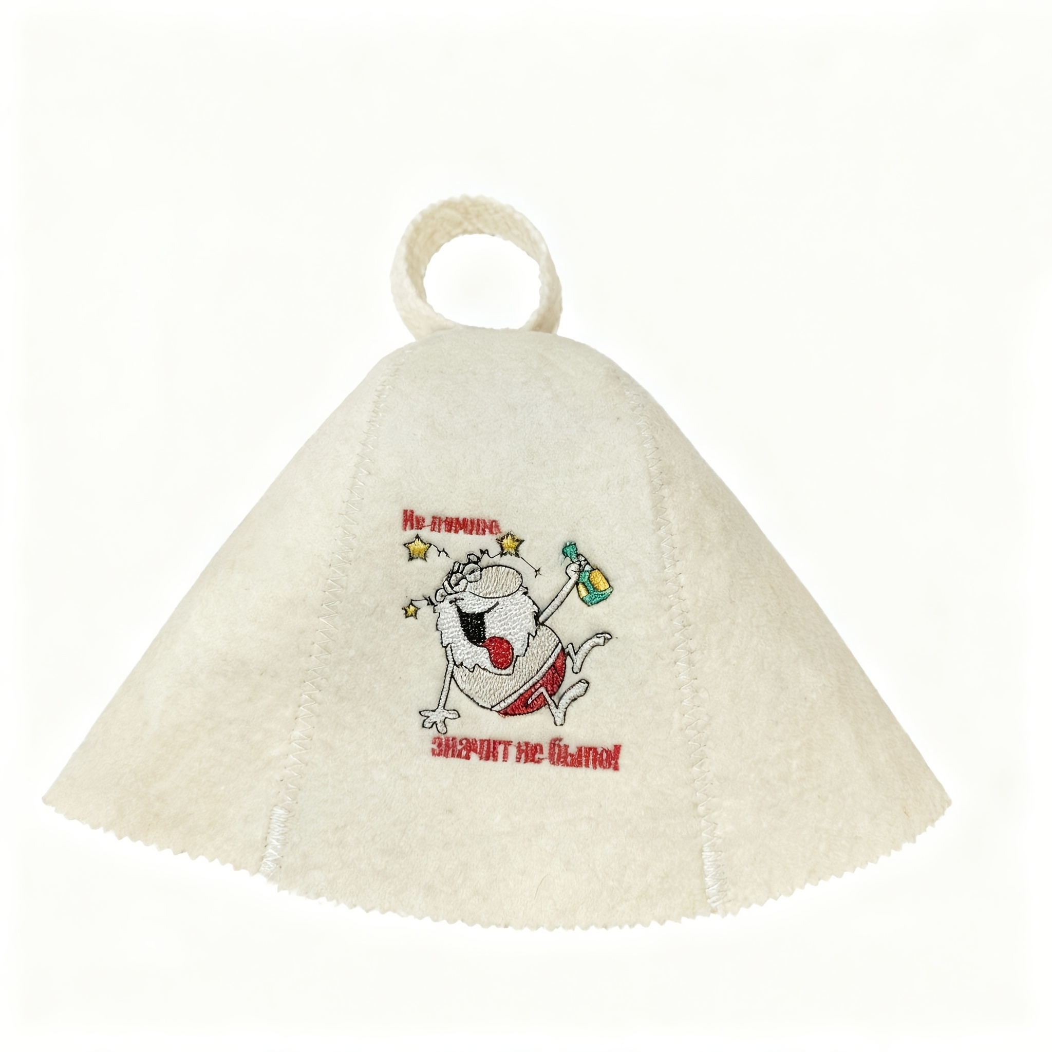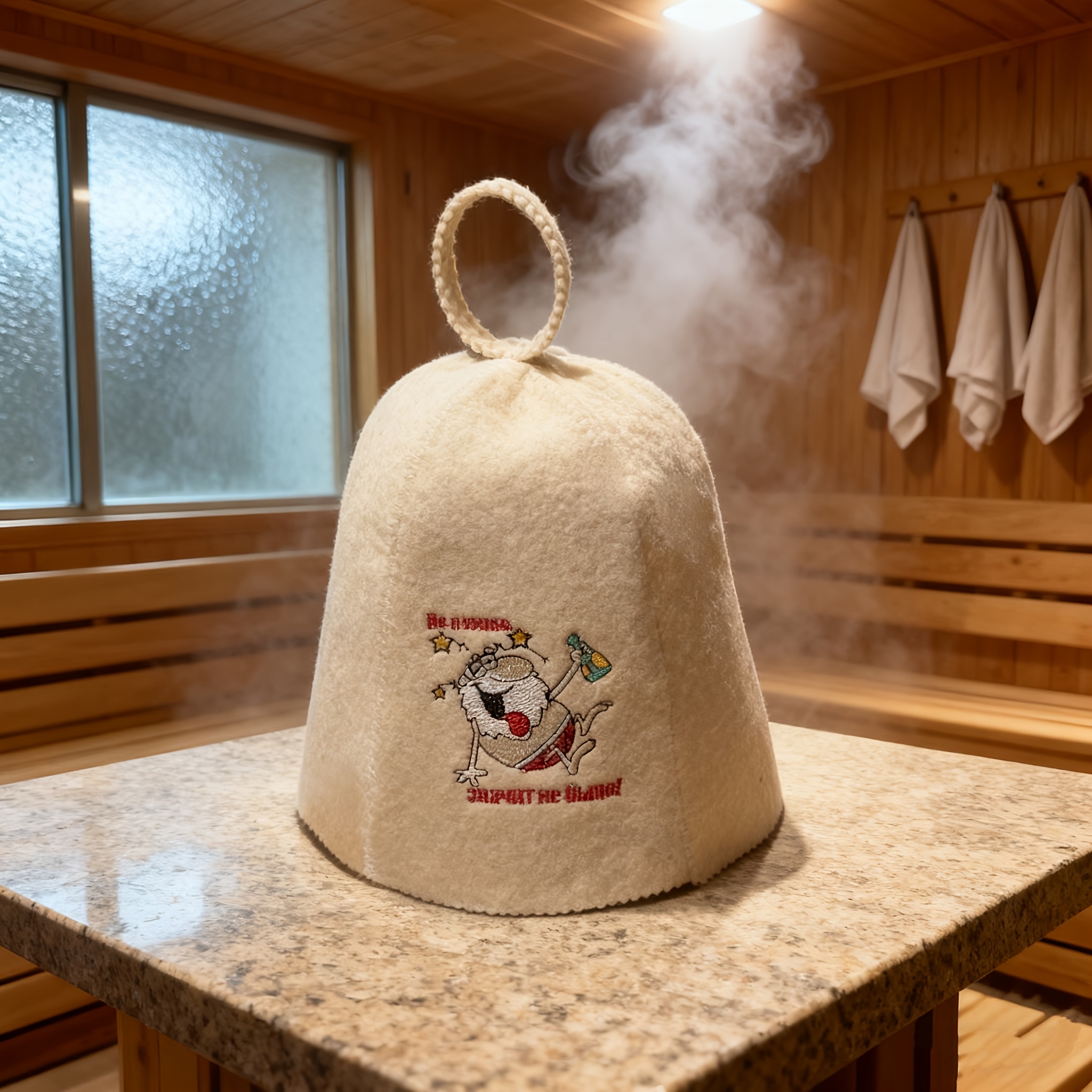 Saunahut, Filzbadehut, Bademütze Wollfilz, weiss mit Bild
