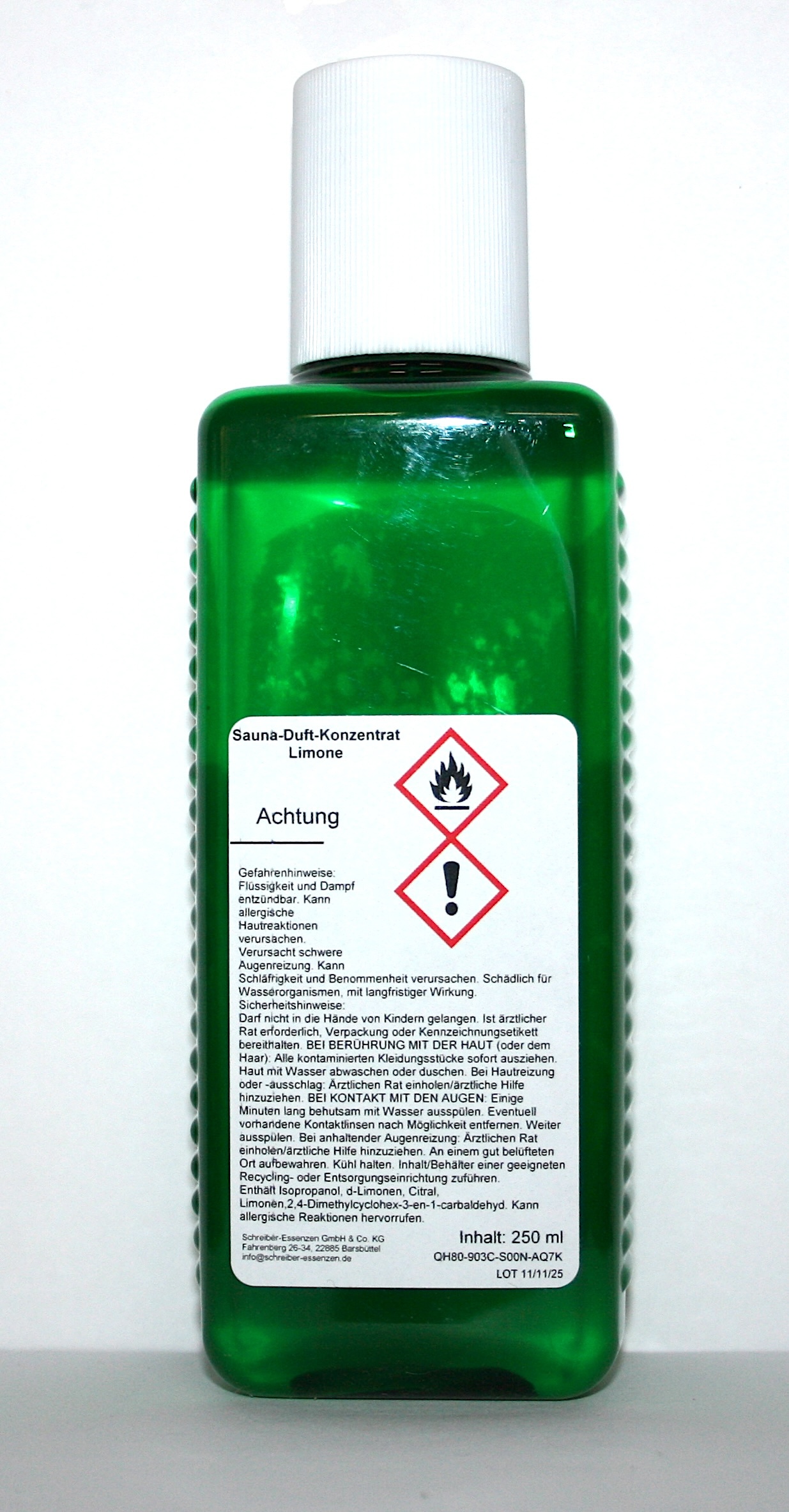 Lieferumfang: 1x 250 ml Saunaduft-Konzentrat Limone