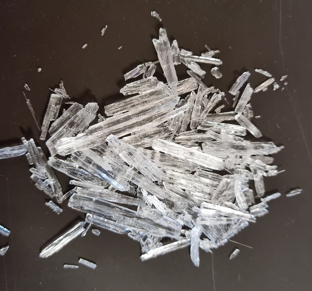 Durch ein schonendes Kühlverahren (dem "Ausfrieren") werden daraus kleine hochwertige Kristalle hergestellt, die einen einzigartigen, kühlend-erfrischenden Duft erzeugen.