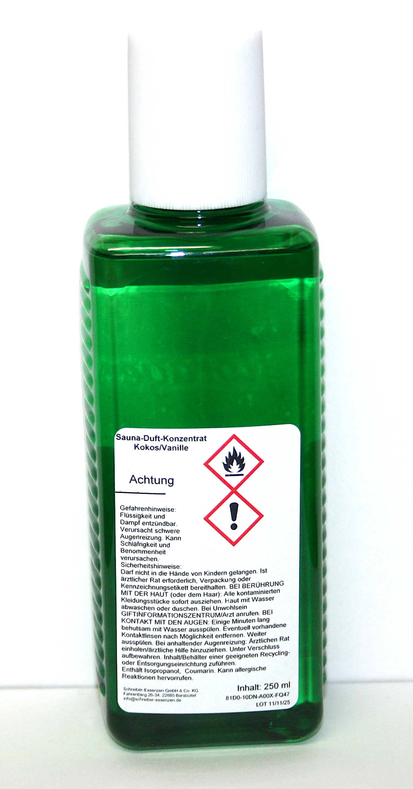 Lieferumfang: 1x 250 ml Saunaduft-Konzentrat Kokos/Vanille