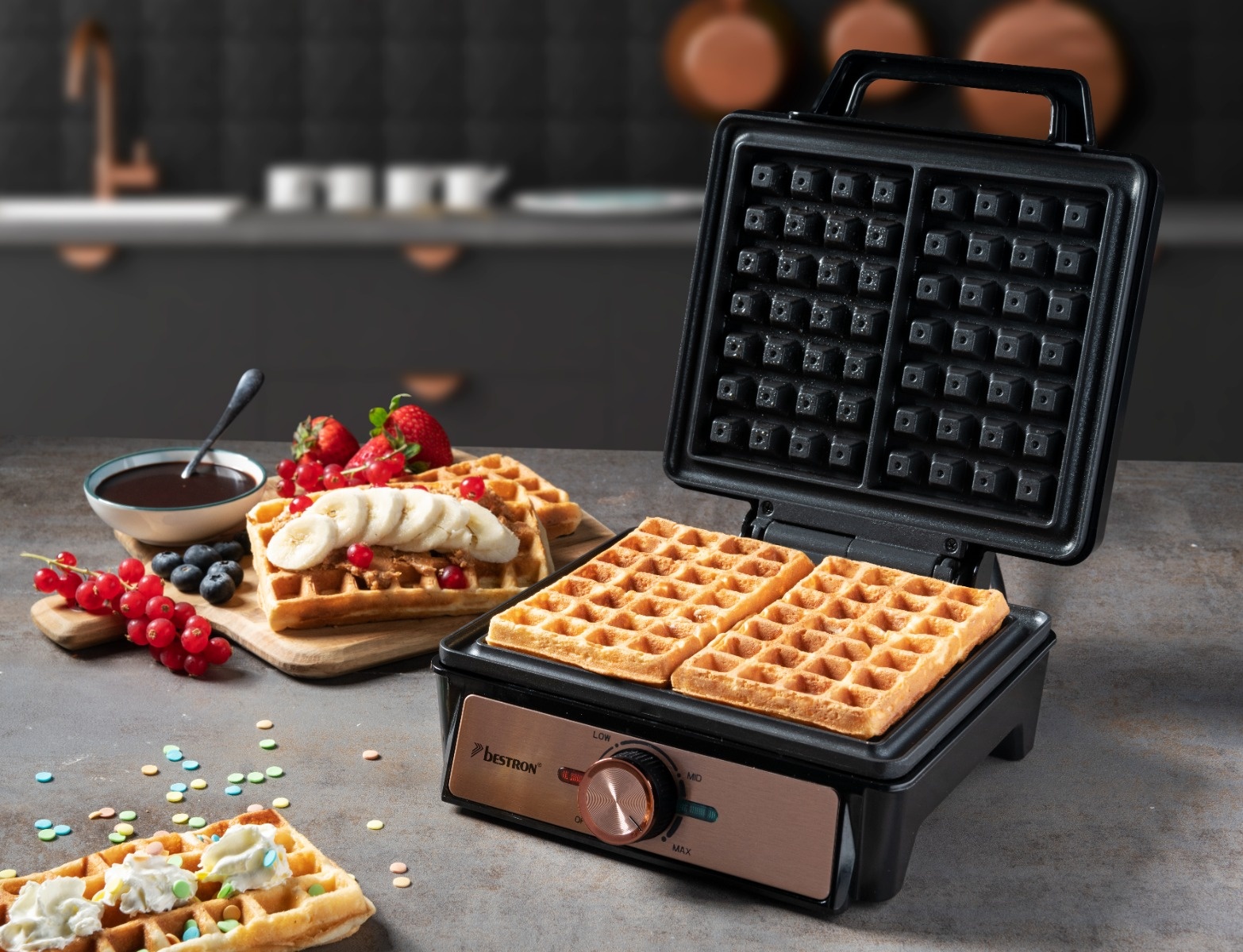 "AWM100CO Waffelautomat für Brüsseler Waffeln Kupfer/schwarz"
