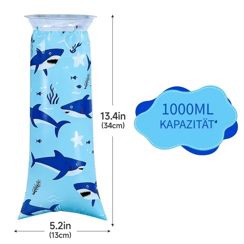 Die Einweg-Kotztüten im praktischen 6er-Pack mit Haimotiv sind perfekt für unterwegs geeignet – ob auf Reisen, im Auto, Flugzeug oder Bus. Das robuste und widerstandsfähige Material sorgt dafür, dass sie zuverlässig dicht halten und kein Auslaufen möglich ist. Die Beutel lassen sich einfach öffnen und nach Gebrauch sicher sowie hygienisch verschliessen.