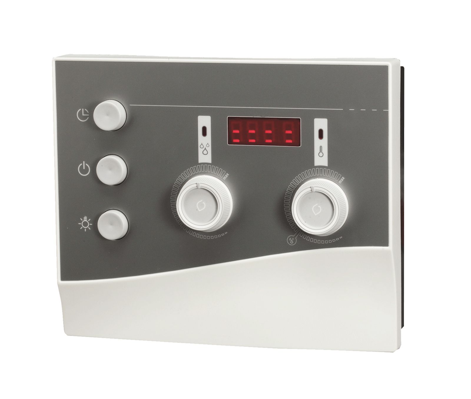 - Temperatur  (Saunabetrieb) stufenlos regelbar von 40 °C bis 125 °C