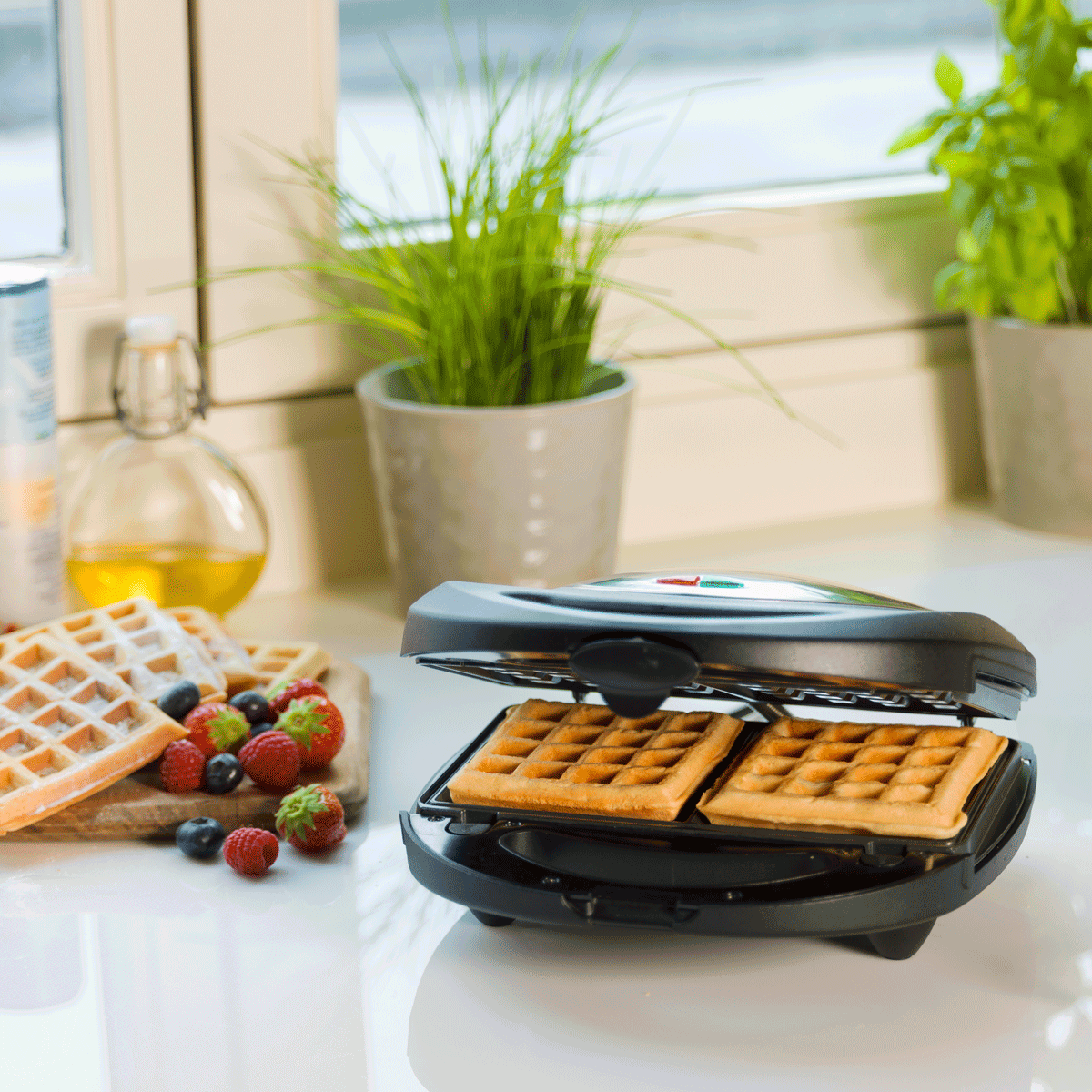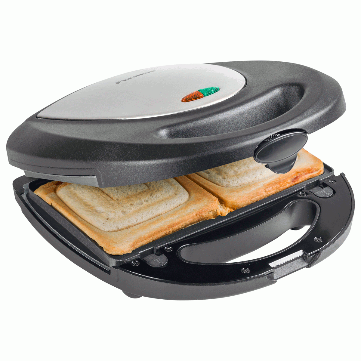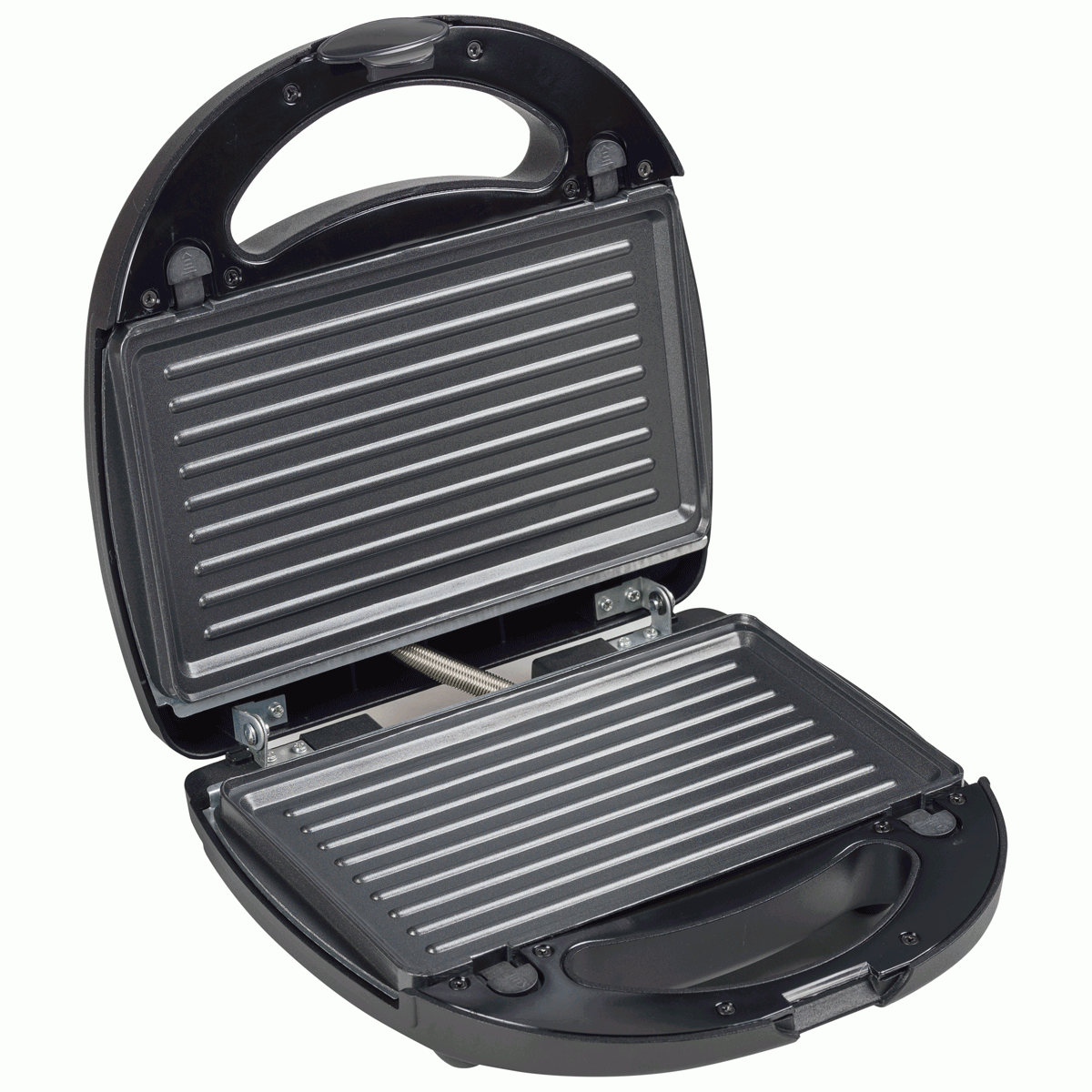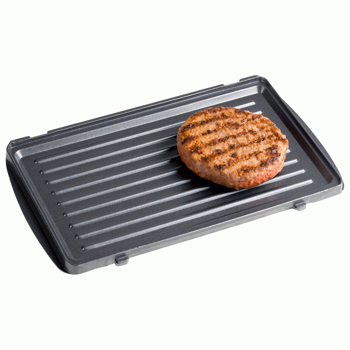 • Maximale Leistung ca. 800 Watt • Vielseitig, minutenschnell einsetzbar für die Zubereitung von Sandwiches, Waffeln und zum Grillen von: Panini, Steaks, Gemüse, Gambas, Fleisch, Fisch usw. • 3 Sets auswechselbarer Heizplatten: - Heizplatte Sandwich (2x), für 2 Sandwiches - Heizplatte Waffeln (2x), für 2 Waffeln - Grillplatte (2x), zum Grillen von beiden Seiten • Grillflächen, ca. 21.5 cm x 13 cm • Wärmeisolierendes Gehäuse • Automatische Temperaturregelung • Betriebskontrollleuchte und Bereitschaftsanzeige • Platzsparende, senkrechte Aufbewahrung • Die herausnehmbaren Heizplatten mit Antihaftbeschichtung sind leicht zu reinigen • Großer wärmeisolierter Griff • Antirutschfüße • Mit GS-Zertifiziertem Prüfzeichen = extra hoher Qualitäts-und Sicherheitsstandard