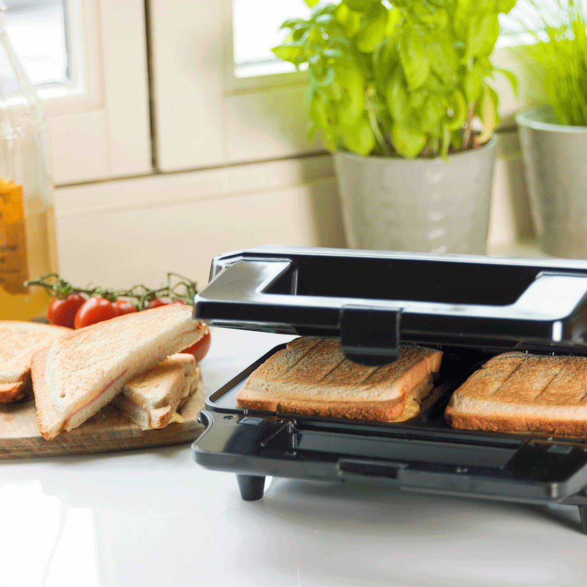 • Maximale Leistung ca. 900 Watt • Vielseitig, minutenschnell einsetzbar für die Zubereitung von Sandwiches, Waffeln und zum Grillen von: Panini, Steaks, Gemüse, Gambas, Fleisch, Fisch usw. • 3 Sets auswechselbarer XXL Heizplatten: - Heizplatte Sandwich (2x), für 2 Sandwiches - Heizplatte Waffeln (2x), für 2 Waffeln - Grillplatte (2x), zum Grillen von beiden Seiten • Grillflächen, ca. 15 cm x 28 cm • Wärmeisolierendes Gehäuse aus Edelstahl • Automatische Temperaturregelung • Betriebskontrollleuchte und Bereitschaftsanzeige • Platzsparende, senkrechte Aufbewahrung • Die herausnehmbaren Heizplatten mit Antihaftbeschichtung sind leicht zu reinigen • Großer wärmeisolierter Griff • Antirutschfüße • Mit GS-Zertifiziertem Prüfzeichen = extra hoher Qualitäts-und Sicherheitsstandard