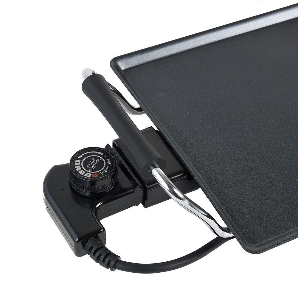 • Extra große, hochwertige Backplatte mit Antihaftbeschichtung, Größe 70,5 x 23,5cm • Für u.a. Fleisch, Fisch, Gemüse, Kartoffeln • Abnehmbarer, einstellbarer Temperaturschalter mit Kontrollleuchte • Kein Öl oder Fett nötig • Auffangrinne und -schale für überschüssiges Fett oder Grillrückstände • Kann im Innenbereich und im Freien verwendet werden • Wärmeisolierte Griffe • Leicht zu reinigen