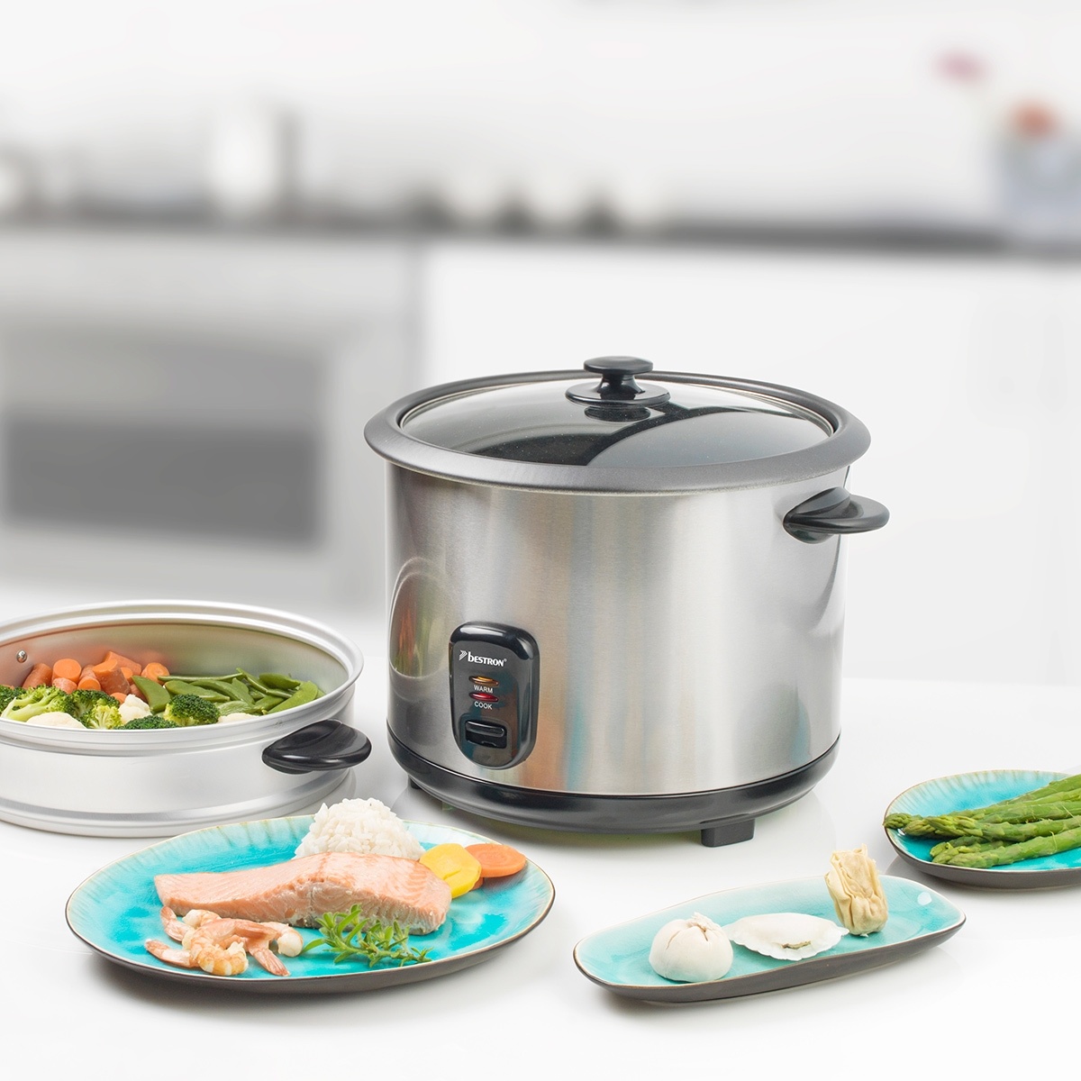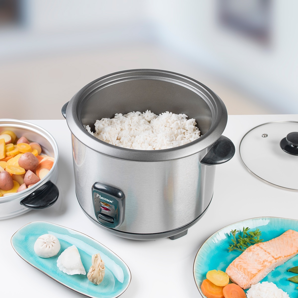 Bestron ARC180 Edelstahl Reiskocher mit Dampfgarer 1.8 Liter