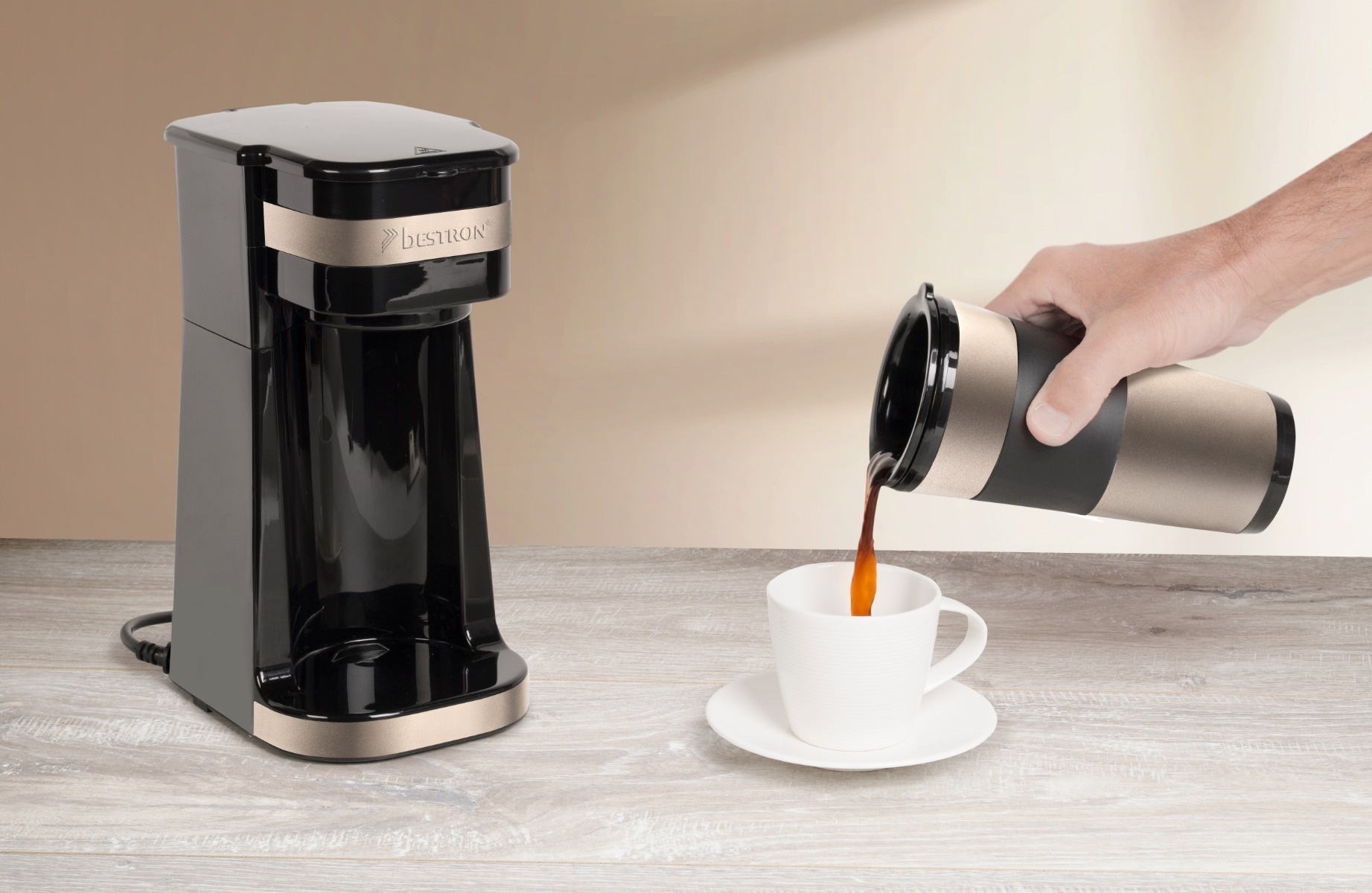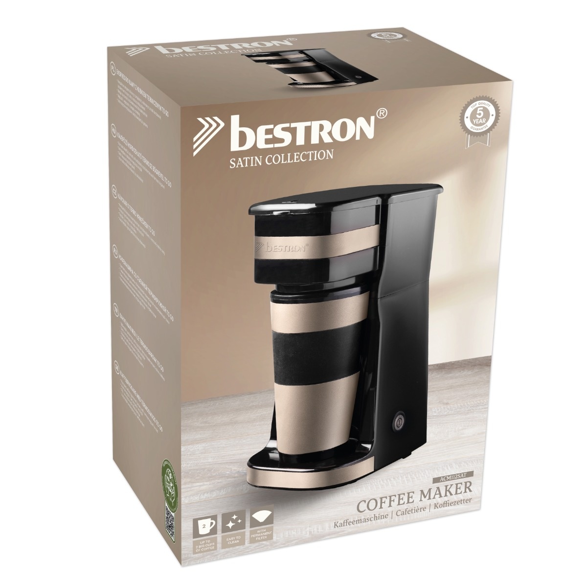 Weiterführende Links zu "Bestron ACM112SAT Kaffeemaschine mit Thermobecher to go Satin"
