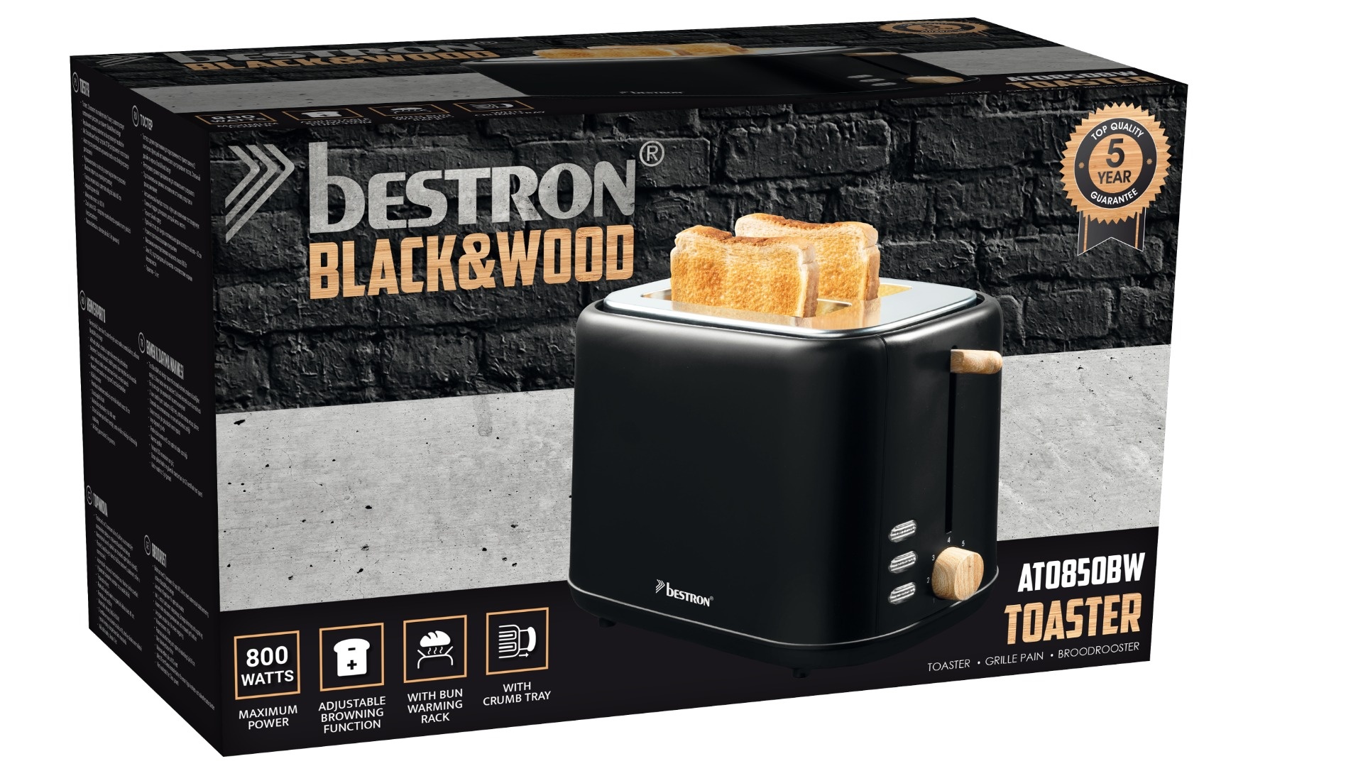 "Bestron ATO850BW Toaster 800W black&wood"