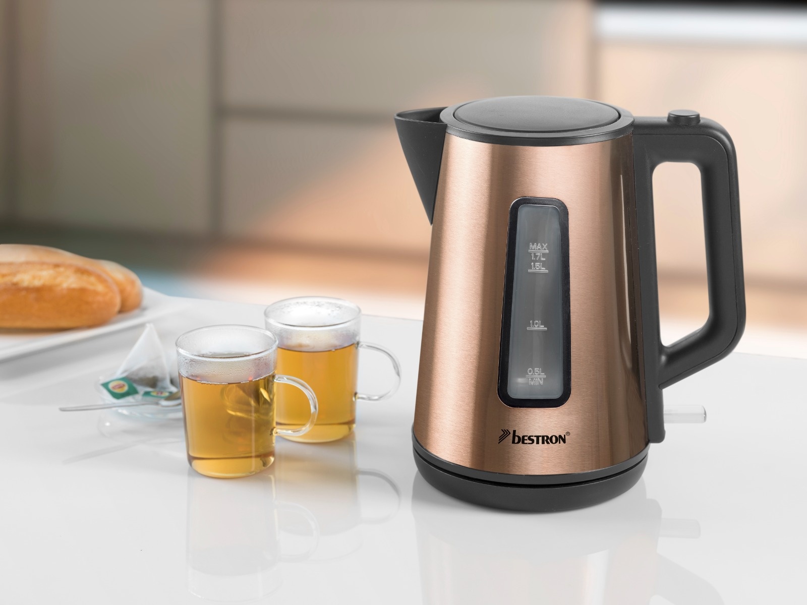 Bestron AWK1000CO Kabelloser Wasserkocher 1.7 Liter, Kupfer