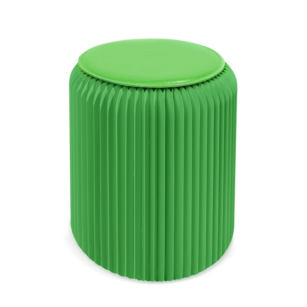 Dieser Kartonhocker lässt sich dank mehrerer in der Vorder- und Rückwand eingelassener Magnete leicht auseinanderfalten und befestigen