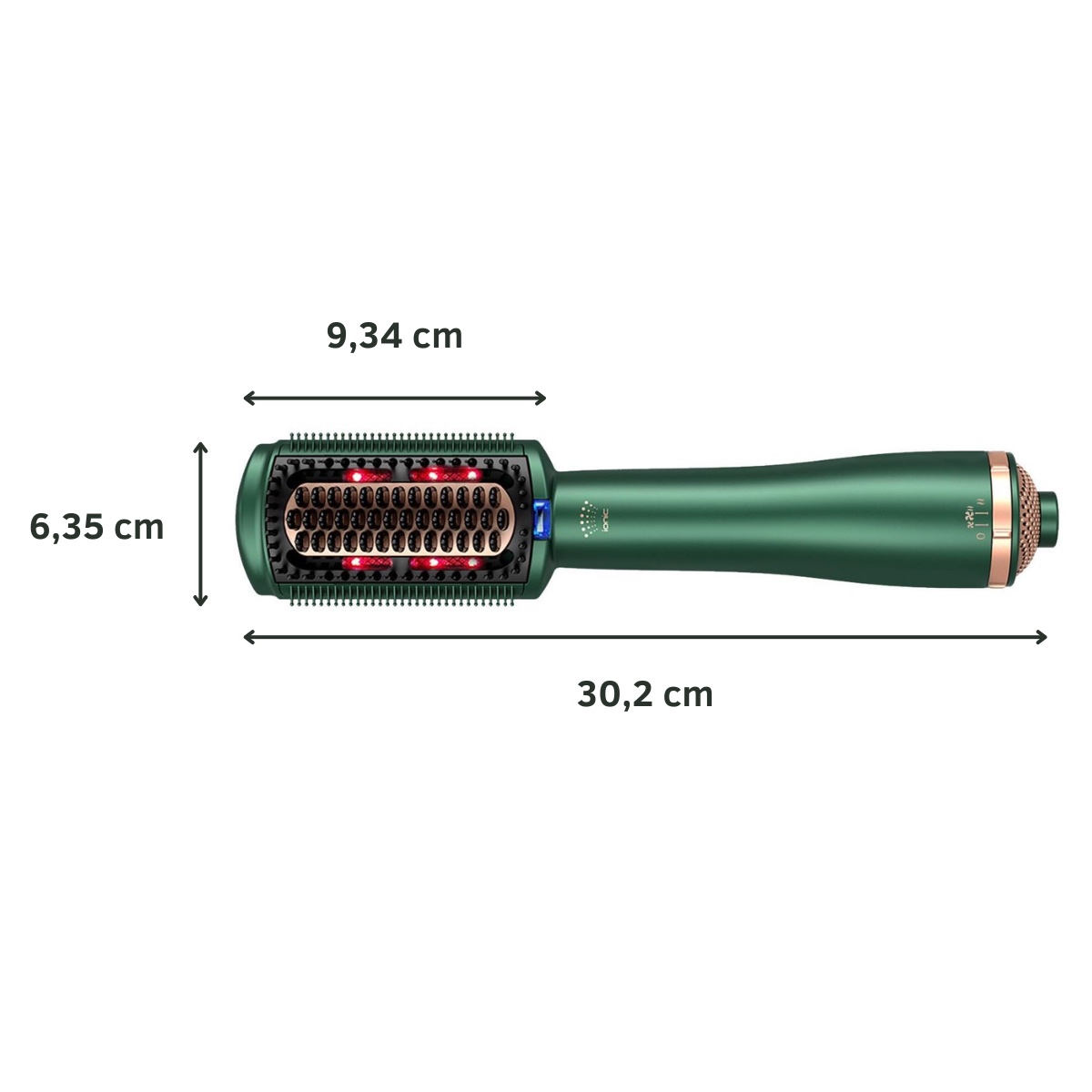 Der Fusion Air Dryer ist eine einzigartige Warmluftbürste, die Föhn, Glätteisen, Hair Curler und Kamm ersetzt. Im Vergleich zu herkömmlichen Haartrocknern trocknet und pflegt er Ihr Haar besonders schonend, dank seiner fortschrittlichen Technik mit beheizten Borsten, Fern-Infrarot-Technik und einem leistungsstarken Ionengenerator. Bereits nach wenigen Anwendungen werden Sie die pflegende Wirkung spüren. Durch seine flache Bürstenform verursacht der Fusion Air Dryer weniger Haarschäden und sorgt schnell für mehr Volumen.
