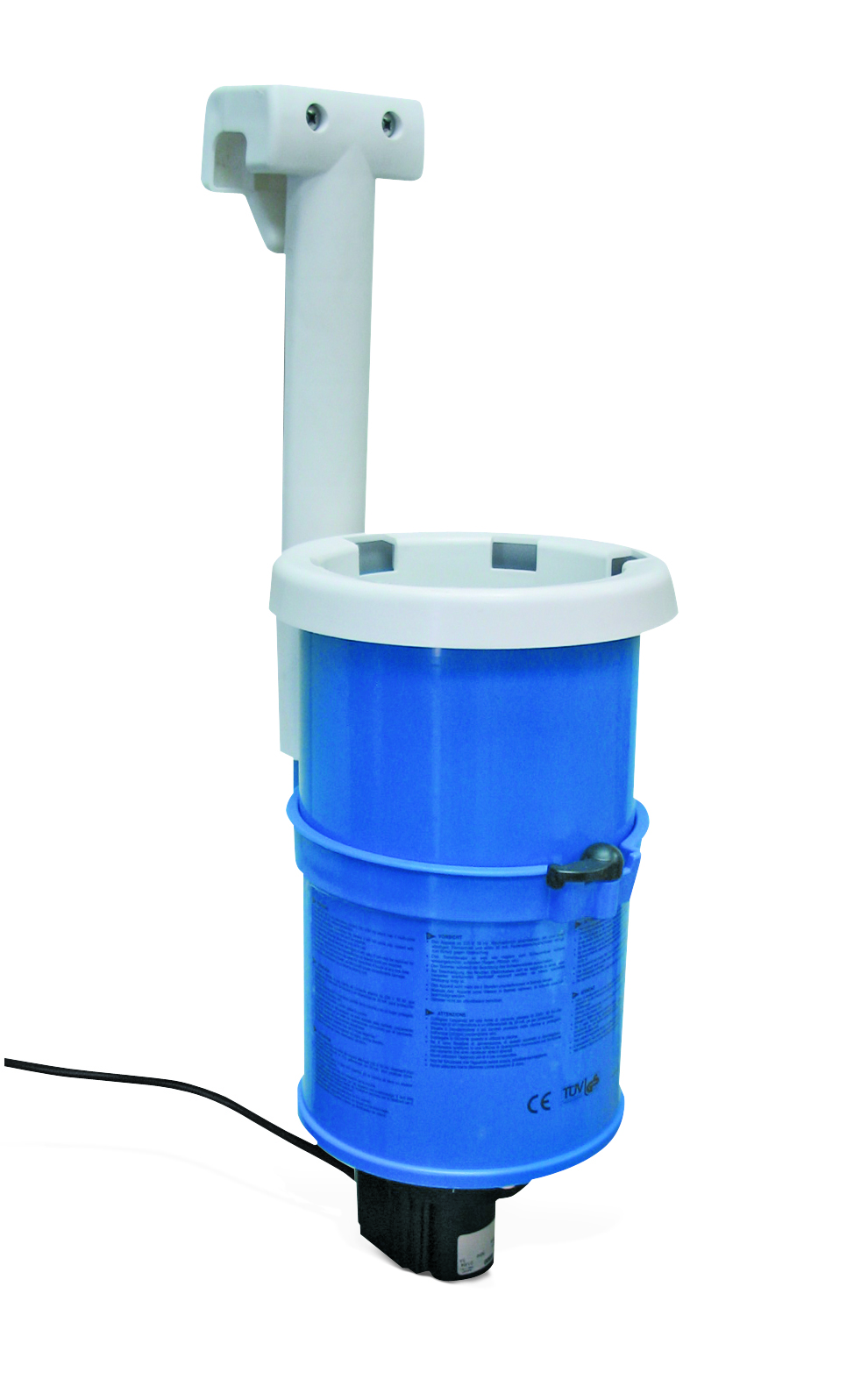 0.30 mm starke feuerverzinkte Stahlwand, grau lackiert. Innenhülle aus PVC-Folie, blau, 0.25 mm stark.