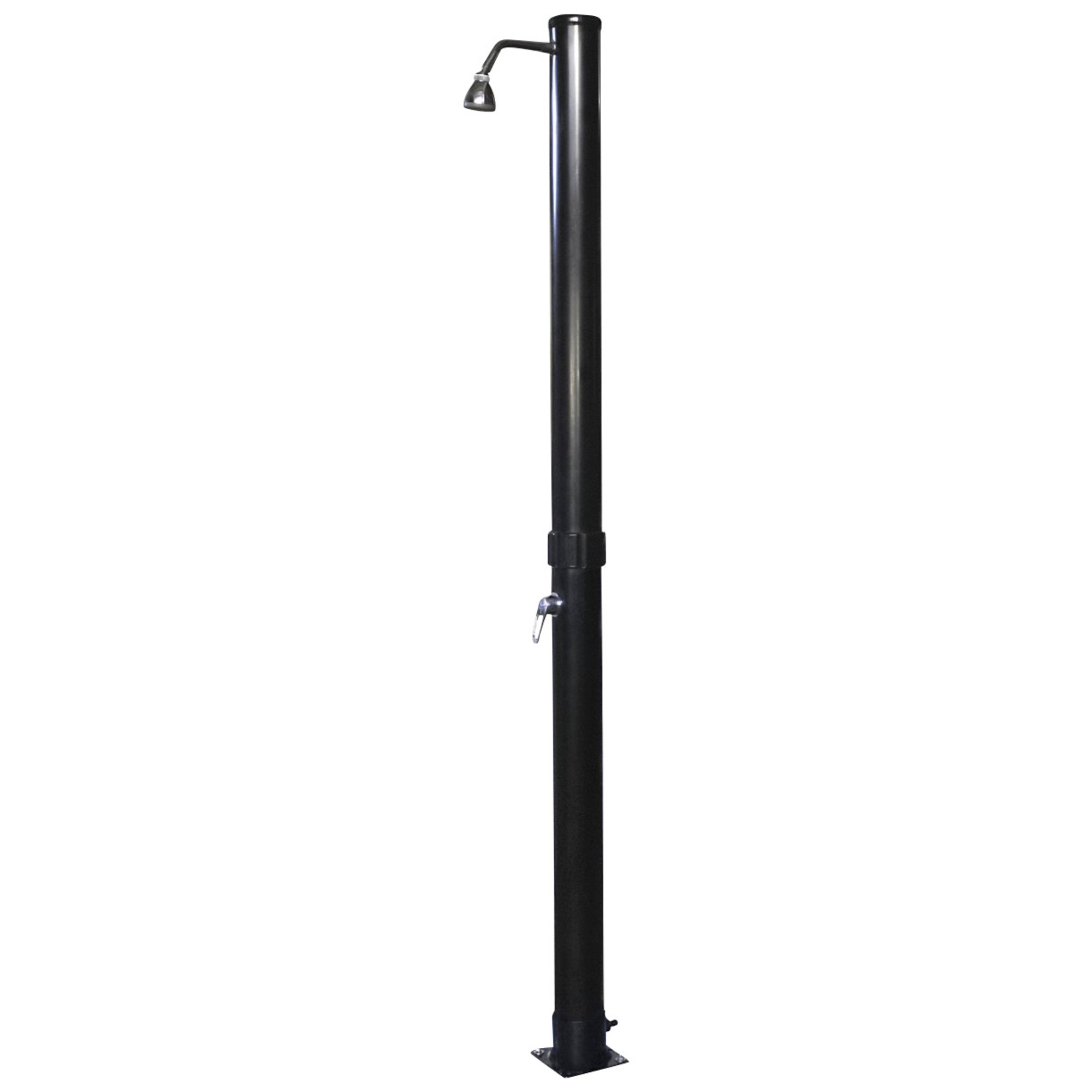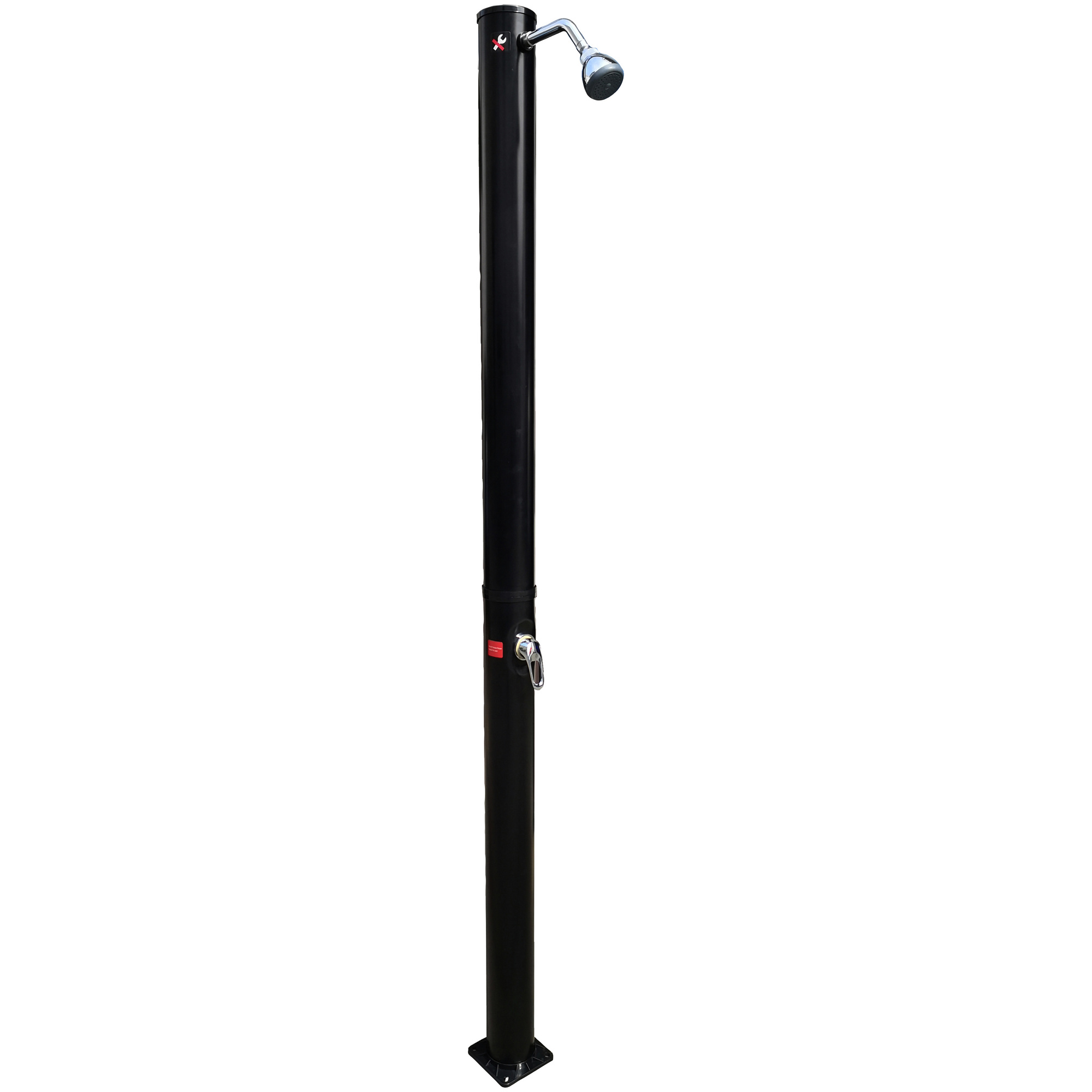 Diese Kunststoff-Solardusche (schwarz) mit 20 Liter Fassungsvermögen besteht aus zwei Teilen und kann daher über den Winter leicht abgebaut und verstaut werden.