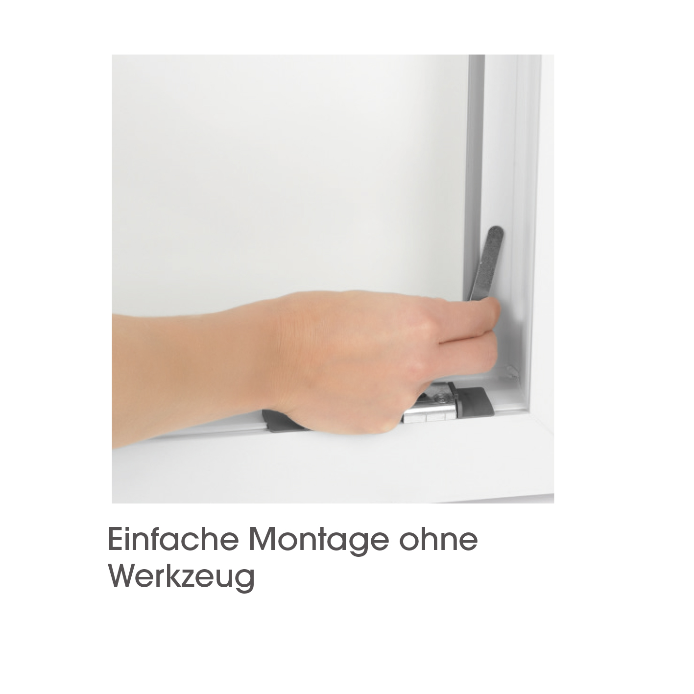 Das „Magic Klick“ Fenster-Moskitonetz wird ohne großen Aufwand mit Halteecken und Magneten befestigt, ohne Bohren, ohne Schrauben, ohne Werkzeug! Halteecken ankleben, Moskitonetz passend für Ihr Fenster zuschneiden, Magnete befestigen, Netz anklicken - fertig! Benötigen Sie das „magische Moskitonetz“ nicht mehr, lassen sich die Befestigungsecken rückstandsfrei wieder ablösen und das Netz kann platzsparend zusammengelegt verstaut werden.