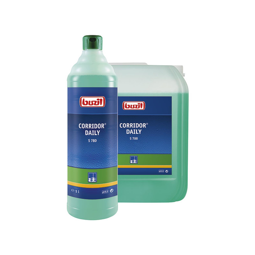 Corridor Daily S 780 ist eine Wischpflege auf Basis wasserlöslicher Polymere mit Geruchsblocker und eignet sich neben der manuellen und maschinellen Unterhaltsreinigung auch für die Intensiv- und Sprühreinigung. Die Anwendung ist reinigend und pflegend gelichzeitig. Das Produkt ist schaumarm, besitzt eine sehr gute Netzeigenschaft und ist selbstglänzend ohne Schichten aufzubauen. Darüber hinaus ist Corridor Daily S 780 schmutzabweisend, rutschhemmend. Es verhindert Begehspuren und ist bis zu Hochglanz polierbar.