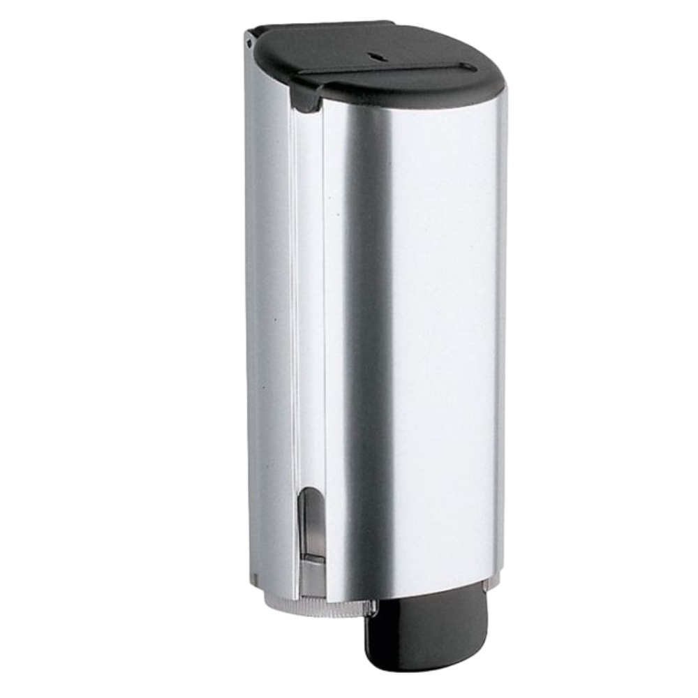 Eigenschaften - Material: Chrom, anodisiertes Aluminium - Füllmenge: 500 ml - nachfüllbar - Wandmontage - Langlebiger Kolbenmechanismus - Abschliessbar - Masse: LxBxT 24 x 12 x 11.5 cm - Lochabstand (Wandmontage 4 Schrauben) 18.5 / 5.5 cm - Sichtfenster zur Kontrolle des Seifenverbrauchs