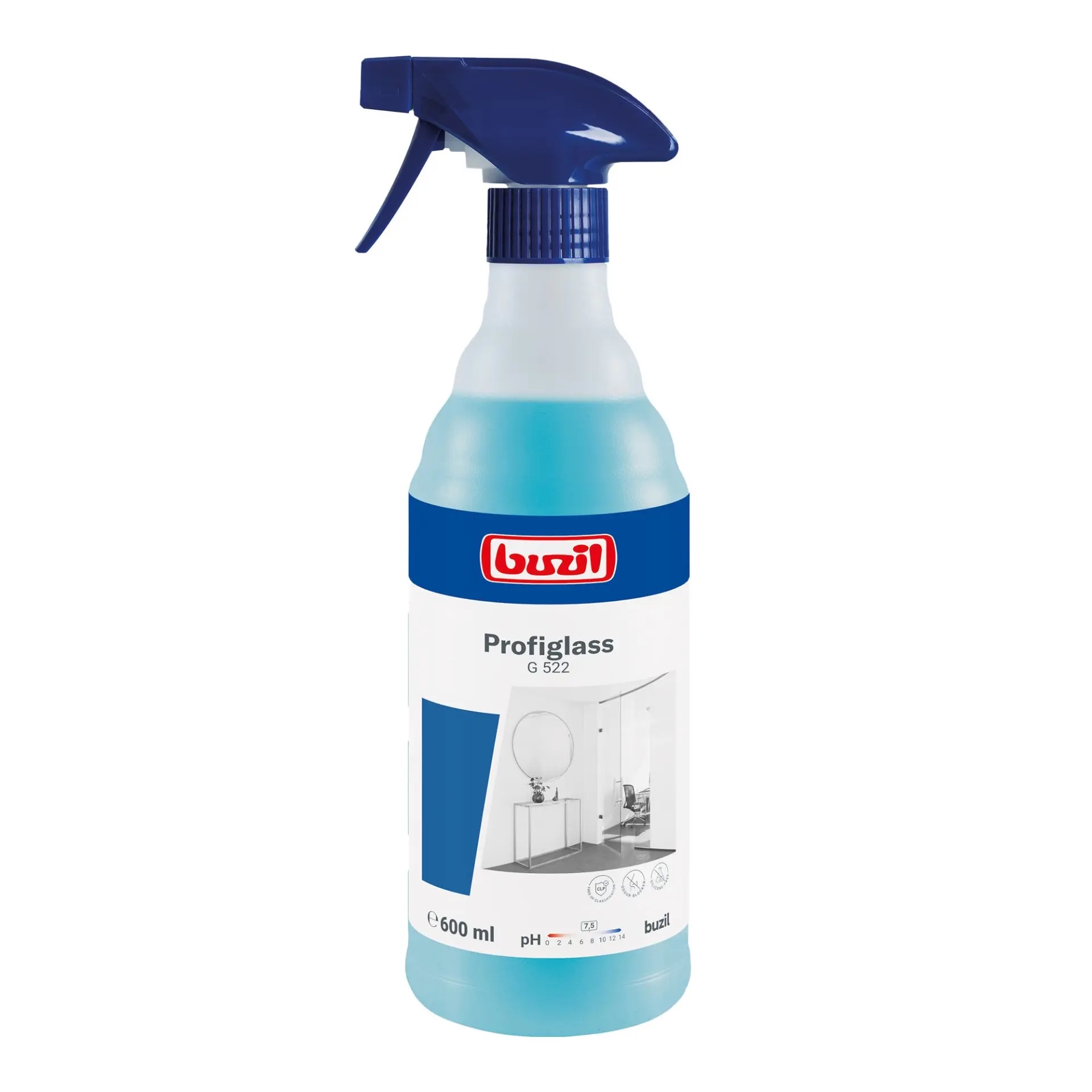 Buzil Profiglass G522 ist ein gebrauchsfertiger Glasreiniger für ein streifenfreies Ergebnis bei der Unterhaltsreinigung auf Oberflächen. Der Anti-Soiling Effekt verzögert eine erneute Anschmutzung.