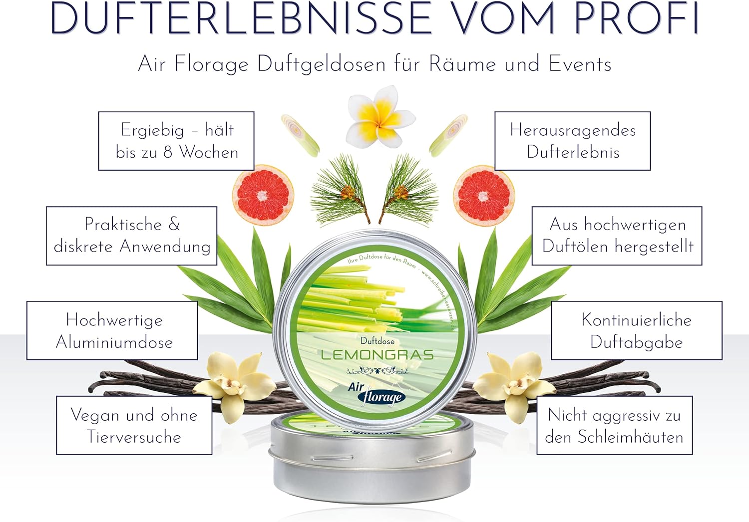 - Einzigartige Dufterlebnis: Aus hochwertigen Duftölen hergestellt. Einfach Dose öffnen und geniessen. Raumduft Duftspender mit einzigartigem Geruch. Dezenter Erfrischer.