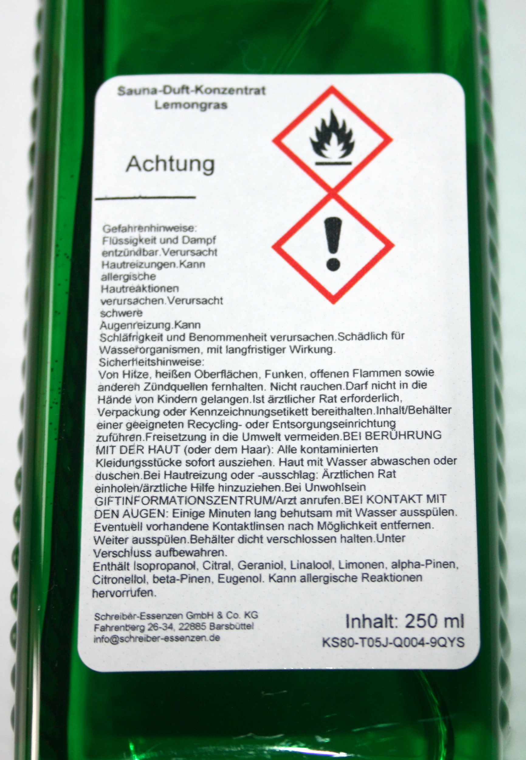 Lieferumfang: 1x 250 ml Saunaduft-Konzentrat Lemongras