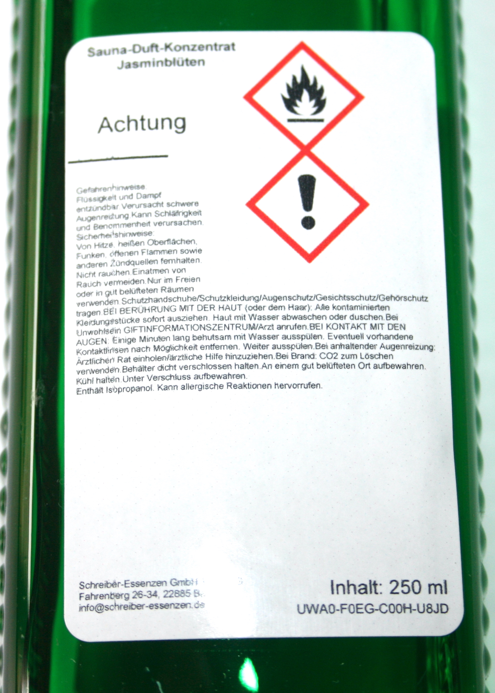 - Versandsichere PET Flasche und damit keine Splittergefahr in der Sauna