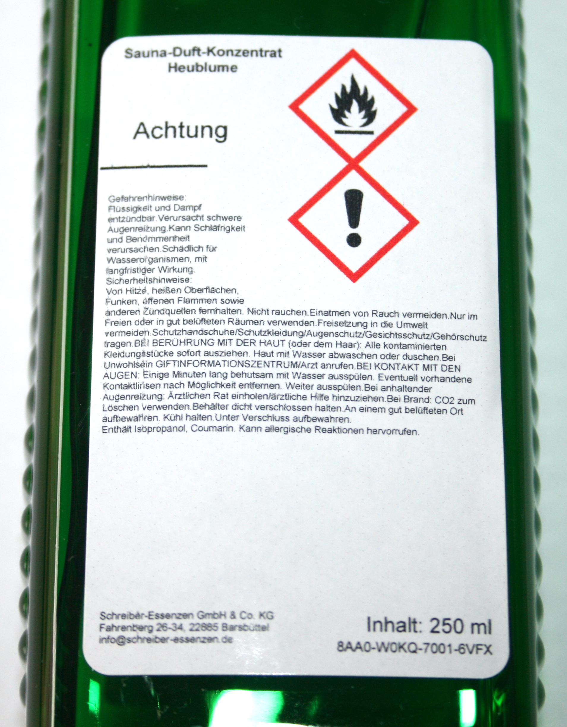 Lieferumfang: 1x 250 ml Saunaduft-Konzentrat Heublume