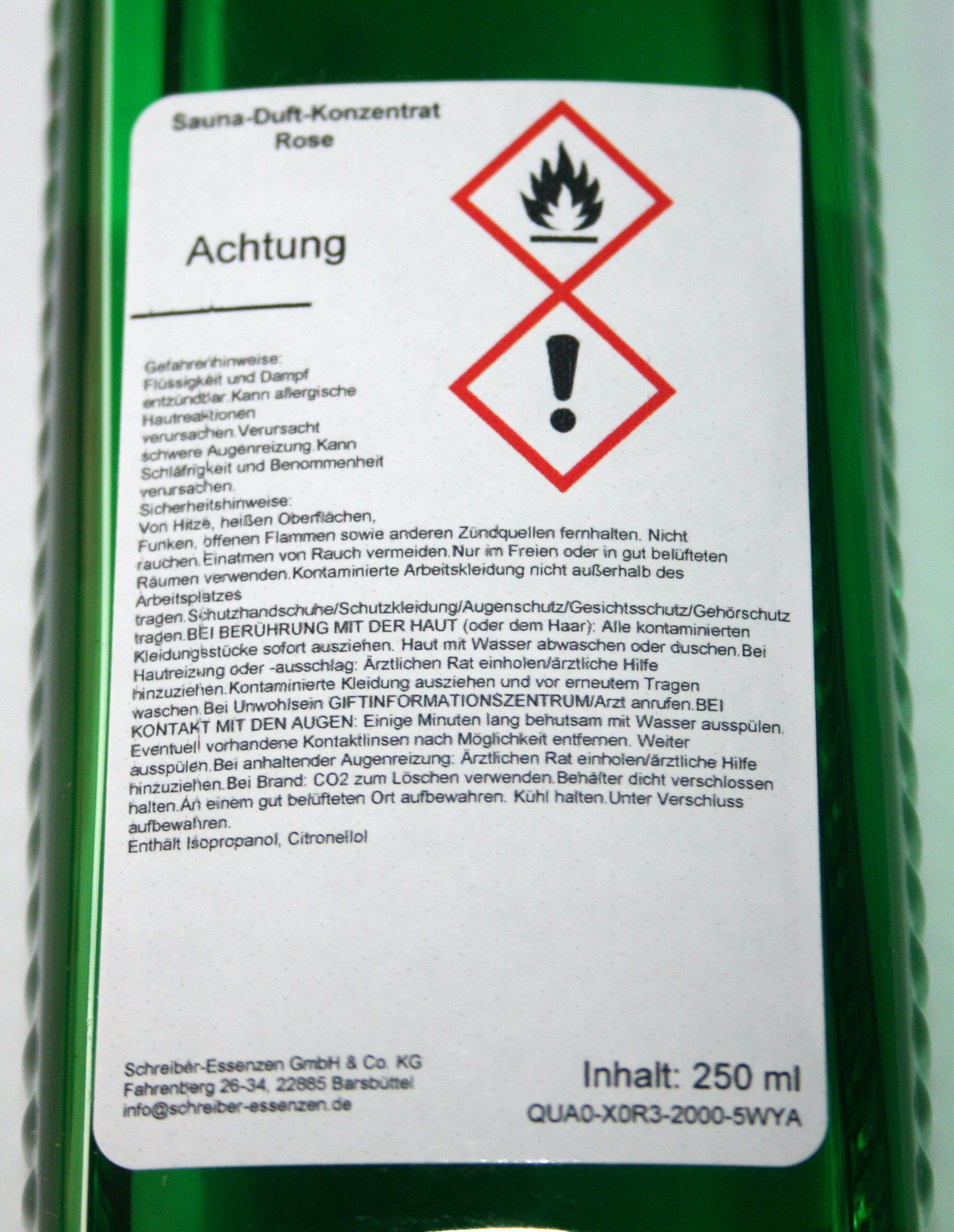 - Versandsichere PET Flasche und damit keine Splittergefahr in der Sauna